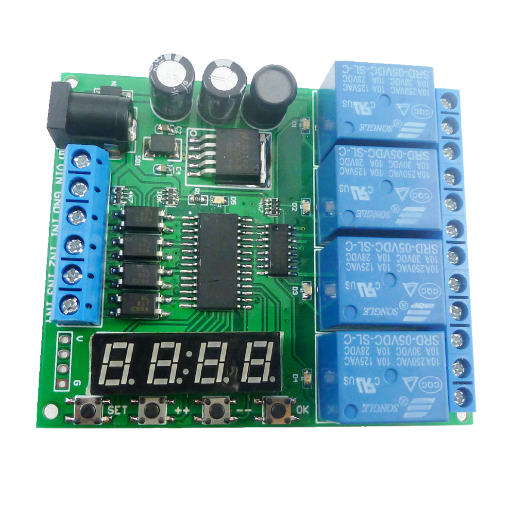 4 channel relay,each channel independently triggered independent delay, do not interfere with each other.